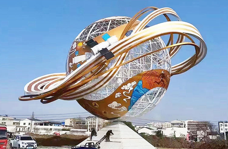 鏤空是不銹鋼雕塑的一種整體表現形式,就是可以從作品外面看見內部或看穿。編織網格、打孔、鉆眼、花紋字符拼貼做成的雕塑都屬于鏤空樣式。鏤空不銹鋼雕塑往往會與燈光一起使用,透視而過的燈光斑駁自然,給人不一樣的視覺感受,如鏤空球。